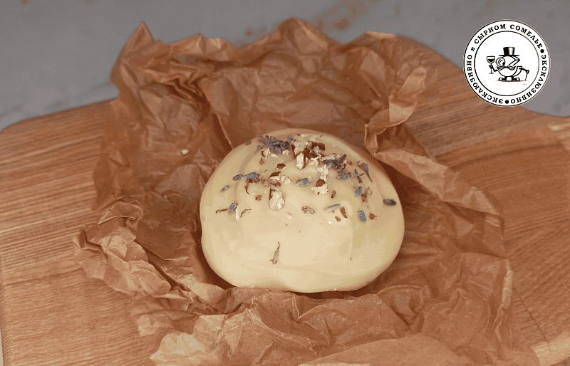 Сырный медиант «Пармезан - Лаванда» изготовлен вручную из белого бельгийского шоколада с добавлением ароматной лаванды и сливочной начинки с кусочками сыра Пармезан.