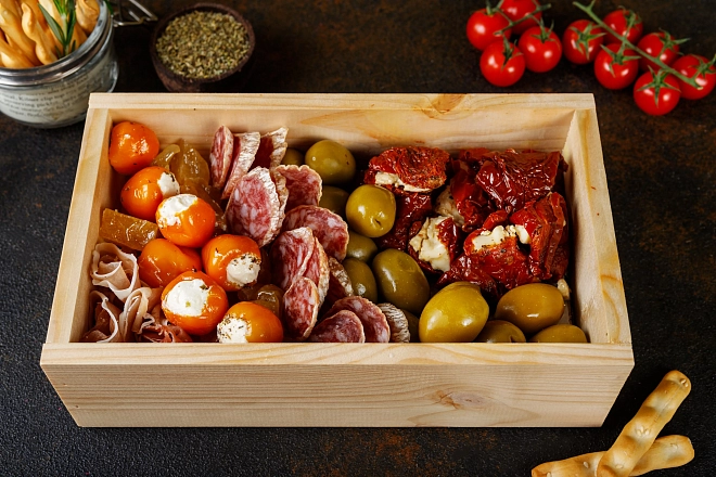 В этом сете мы собрали 3 вида овощей в масле, фаршированных сыром: