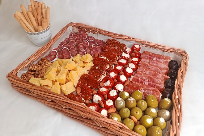 В наборе на четыре человека собрано примерно 1000 г сырно-мясной гастрономии