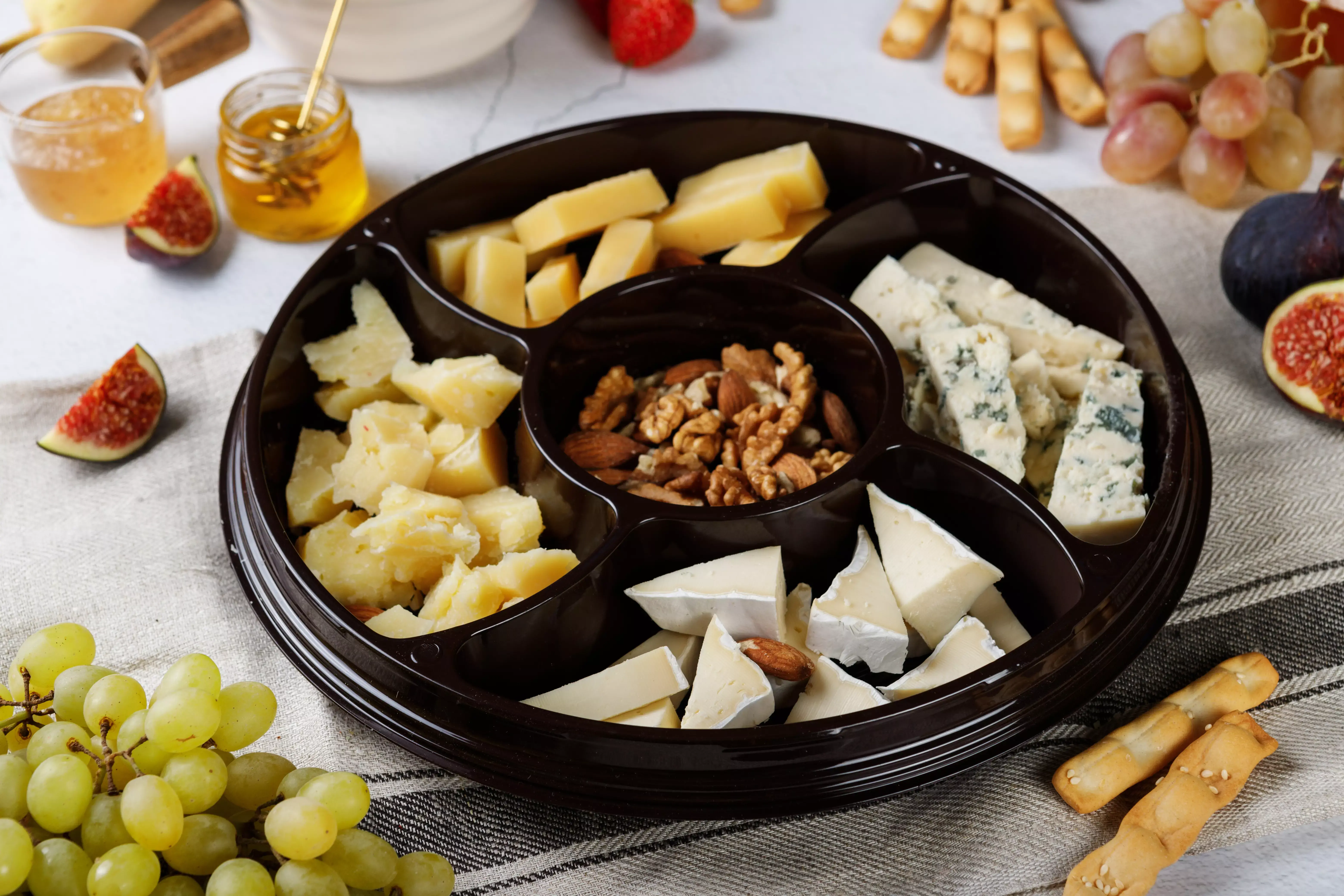 В тарелке на двух человек примерно 260 грамм сыров.