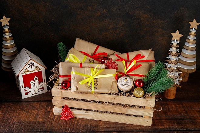 Набор приедет в деревянном ящике, упакованном в прозрачную пленку.