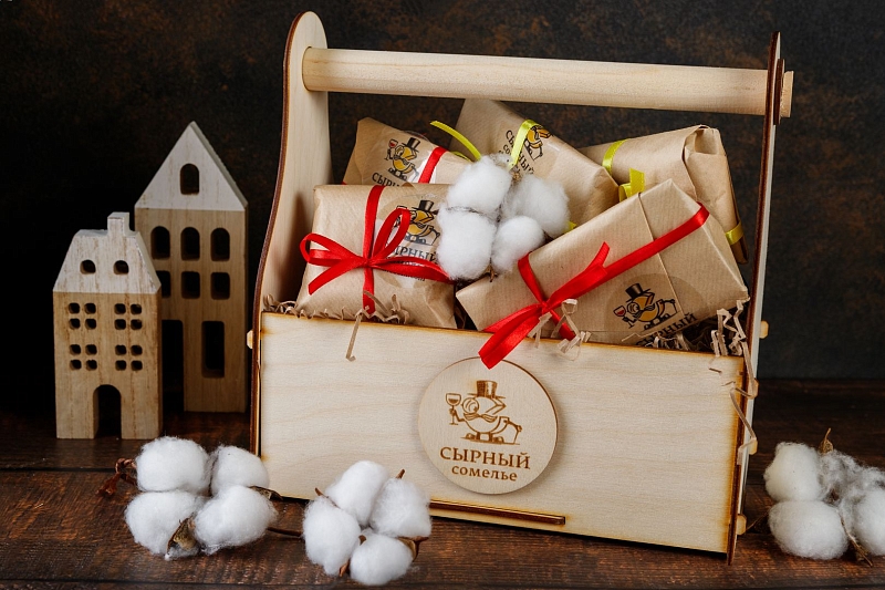Подарочный ящик мини с пятью видами сыров. В ней мы объединили сорта, разные по своему типу, вкусу и аромату: